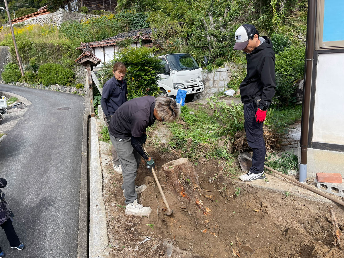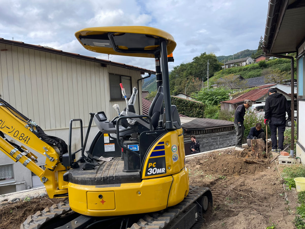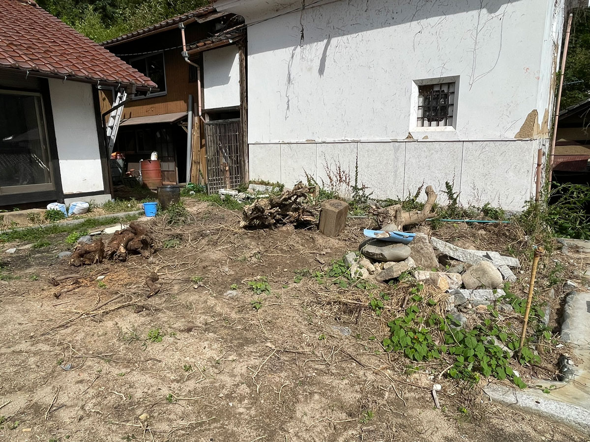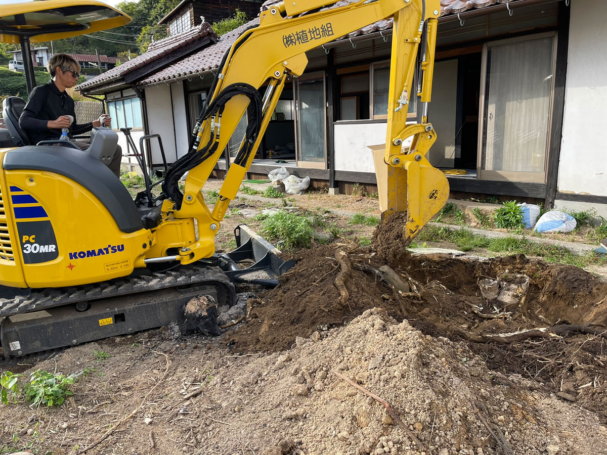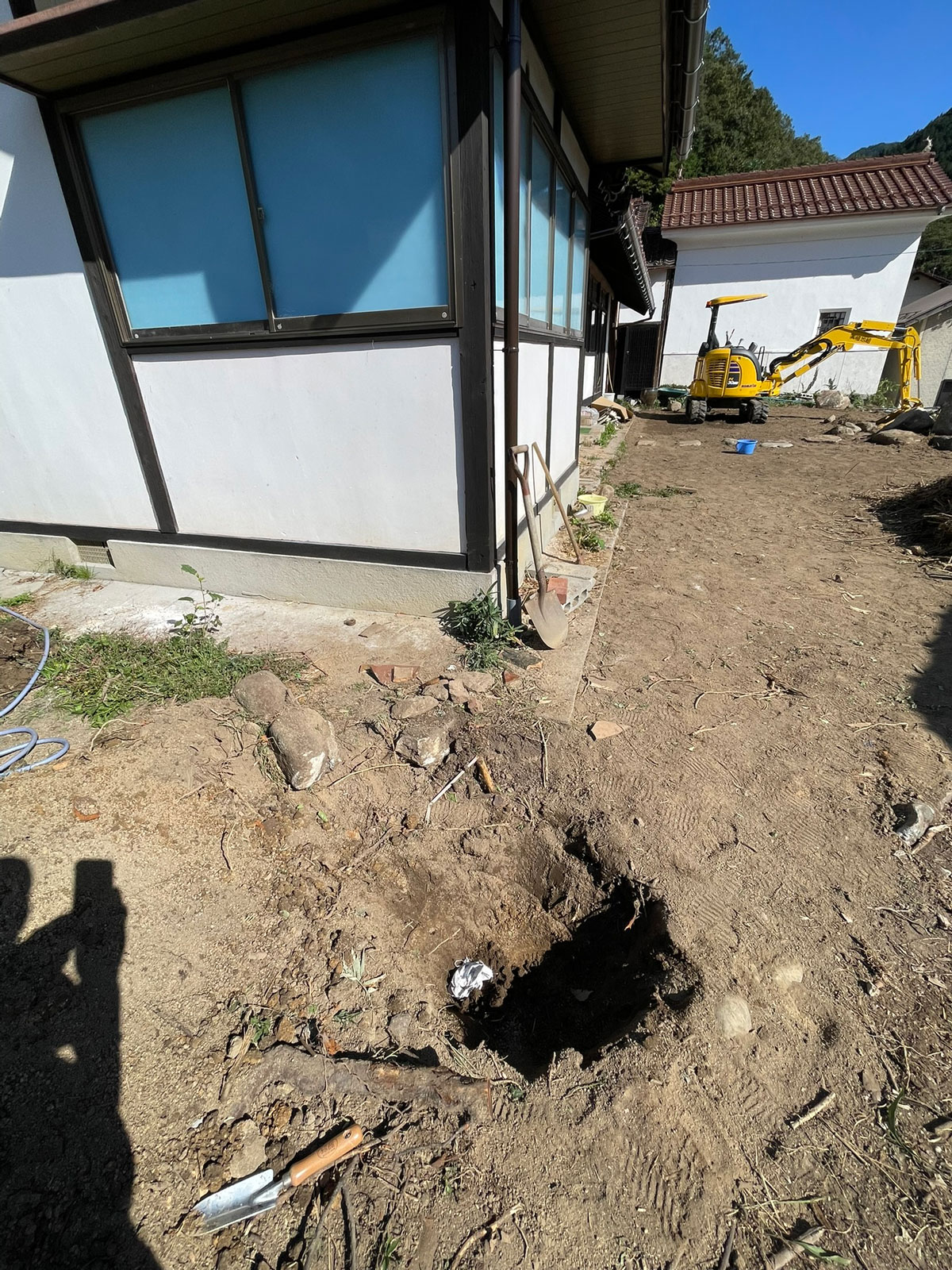 2025.10.20資料館の整備 源田邸外構工事 庭木の伐根作業 庭を整備するにあたり、どうしても木の根が気になっていました。 人力で掘るには無理でしたので、商工会青年部仲間の、植地組にお願いして伐根作業をしてもらいました。 IMG_2928IMG_2929IMG_3142IMG_3149IMG_3151IMG_3180 内装工事開始外構工事 階段修繕
